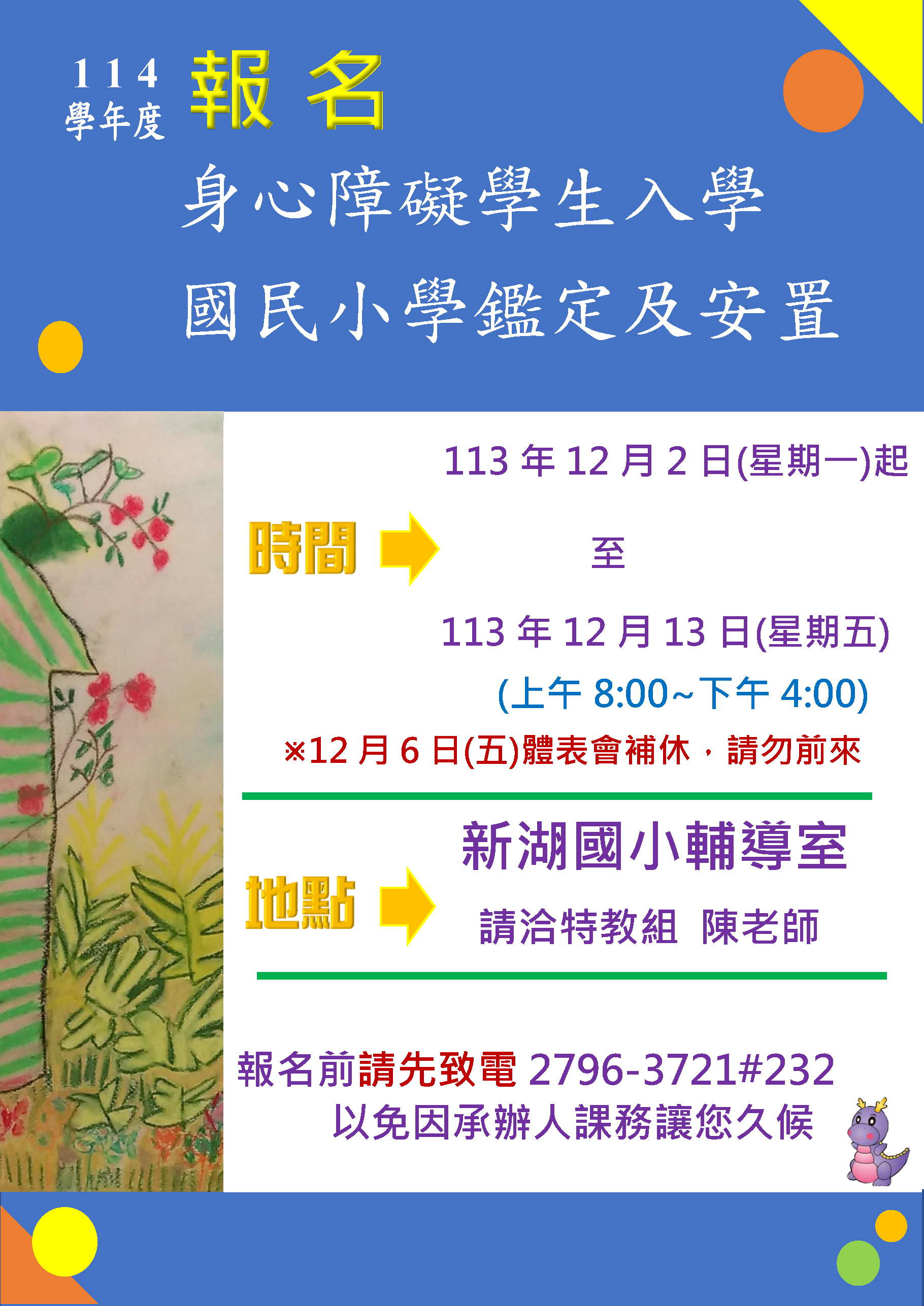 (一)報名:113年12月2日(星期一)至12月13日(星期五)。