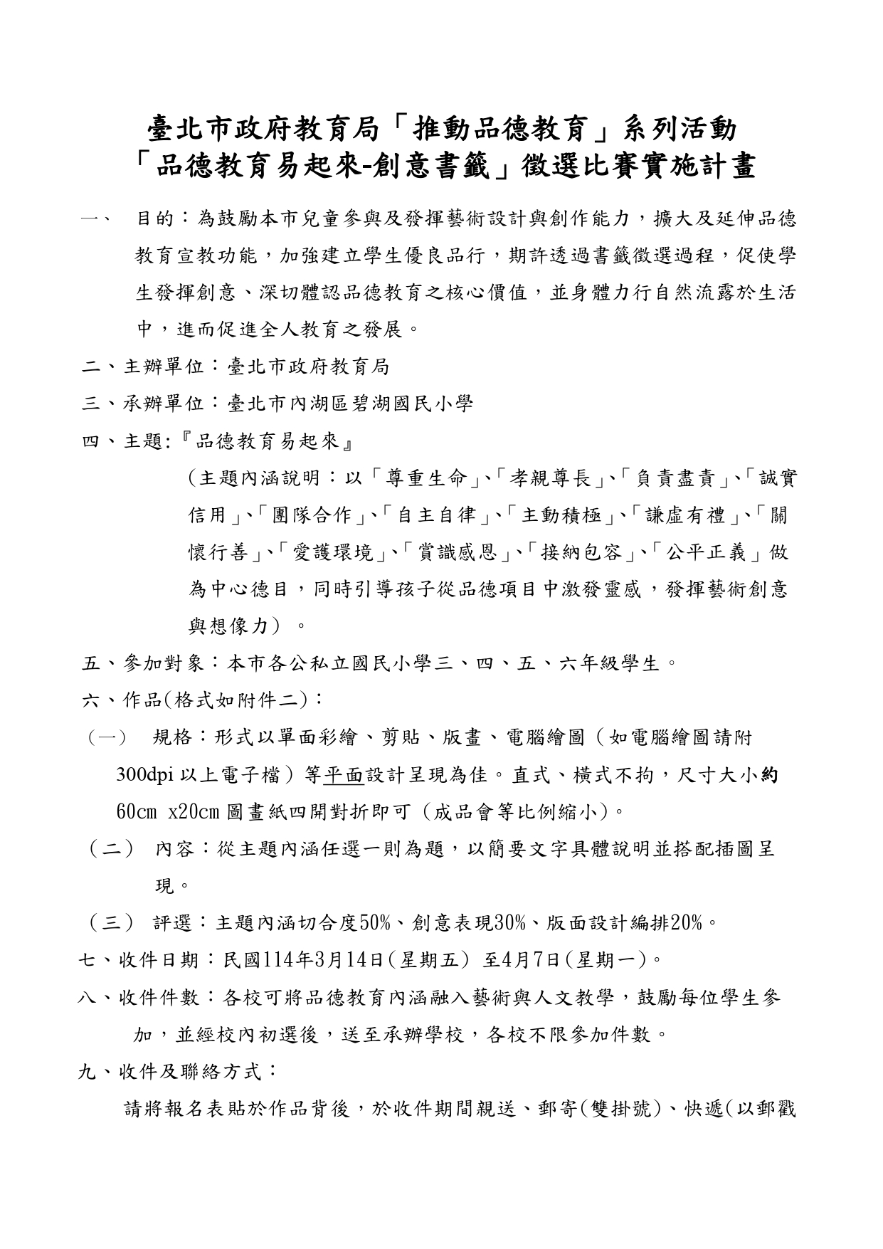歡迎三~六年級學生參與比賽!有意參加者,請於4月1日(二)前將作品、報名表及授權同意書交至學務處生教組。