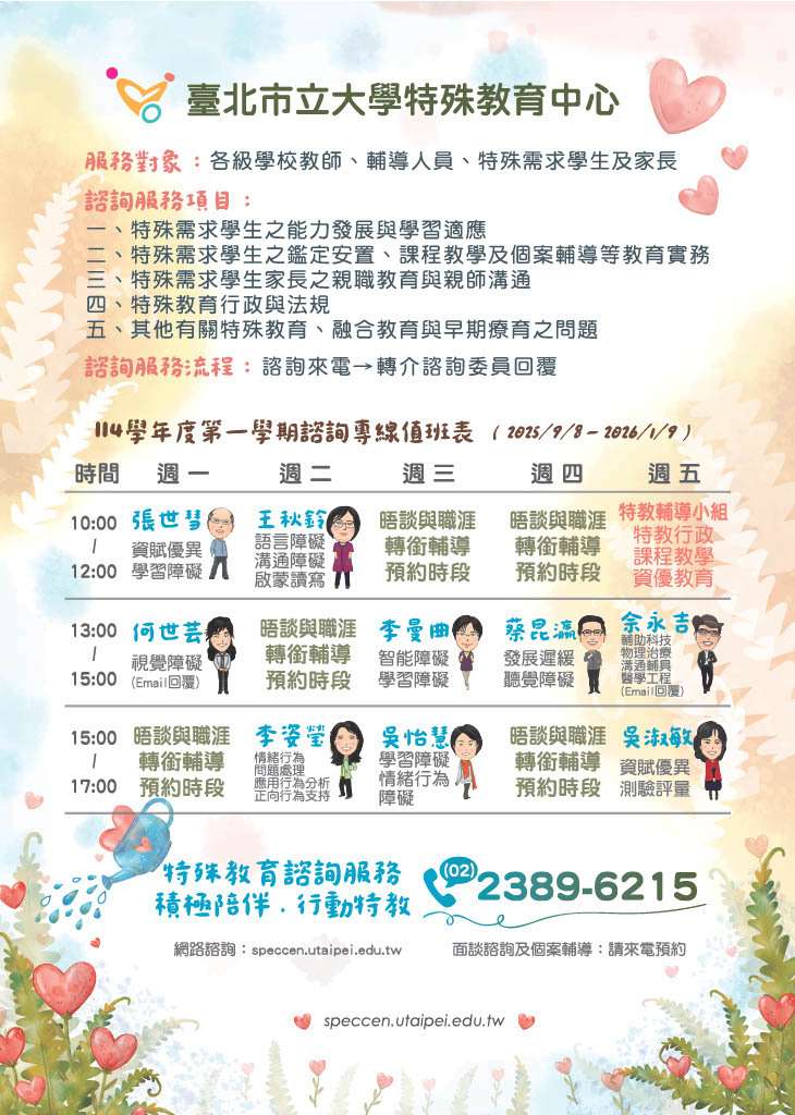 ◆服務時間 114年09月08日∼115年01月09日(寒、暑假及例假日暫停服務)