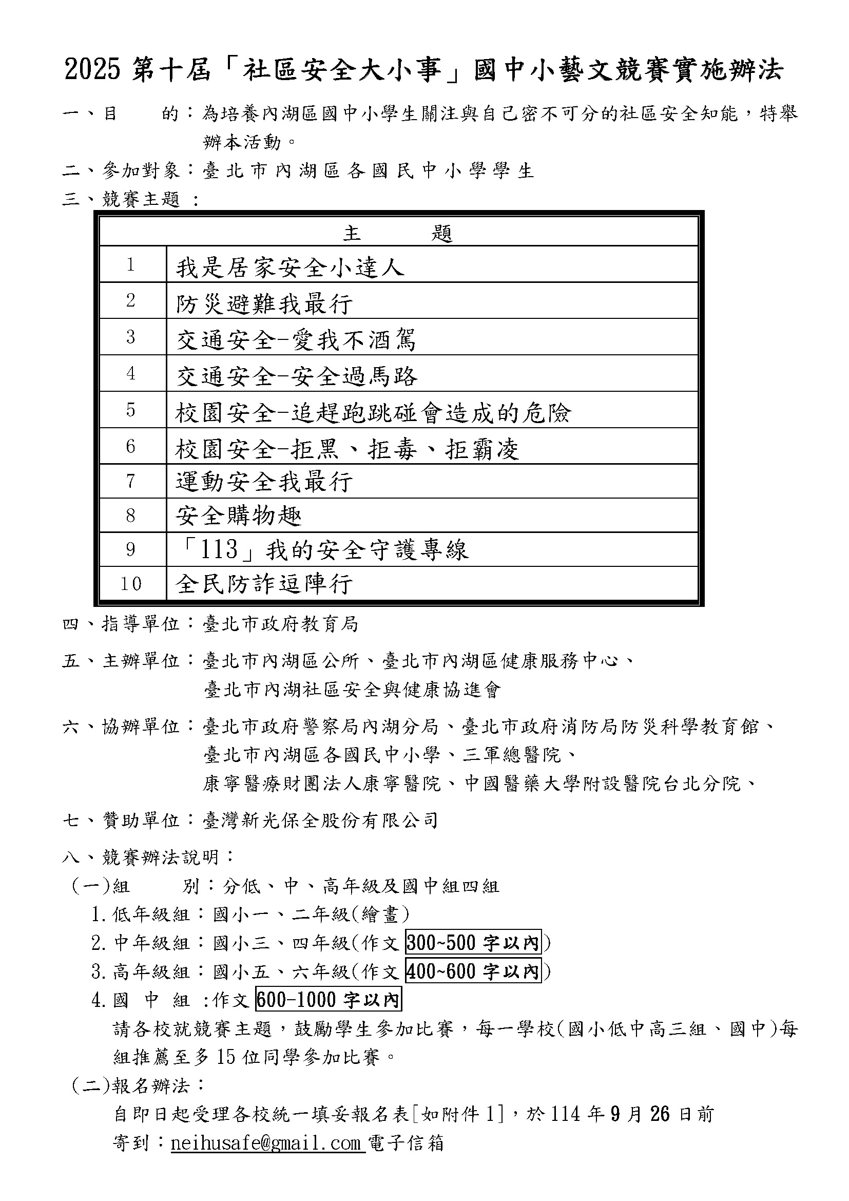 歡迎全校學童踴躍參與,詳細辦法請參考附件。有意參加者,請於9月25日前將作品送至學務處生教組。